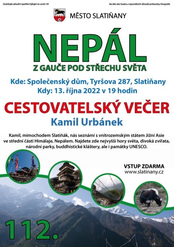 Srdečně zveme na 112. Cestovatelský večer s názvem Nepál z gauče pod střechu světa.
