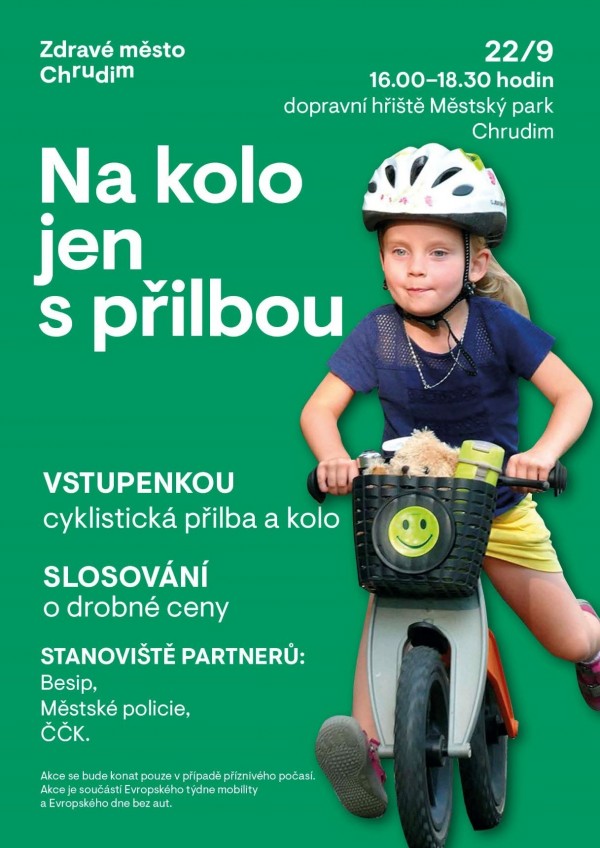 Od 16:00 do cca 18:30 hodin na dopravním hřišti v Městském parku je připravena akce„Na kolo jen s přilbou“.