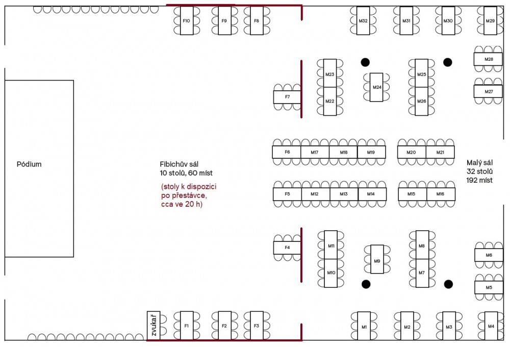 - po ukončení nástupu a následné přestávce budou připravena místa k sezení na Fibichově sále