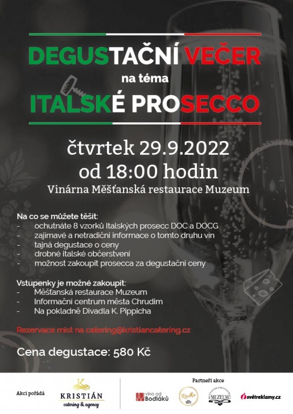 KRISTIÁN catering & agency Vás zve na DEGUSTAČNÍ VEČER • ITALSKÉ PROSECCO do Vinárny v Muzeu.