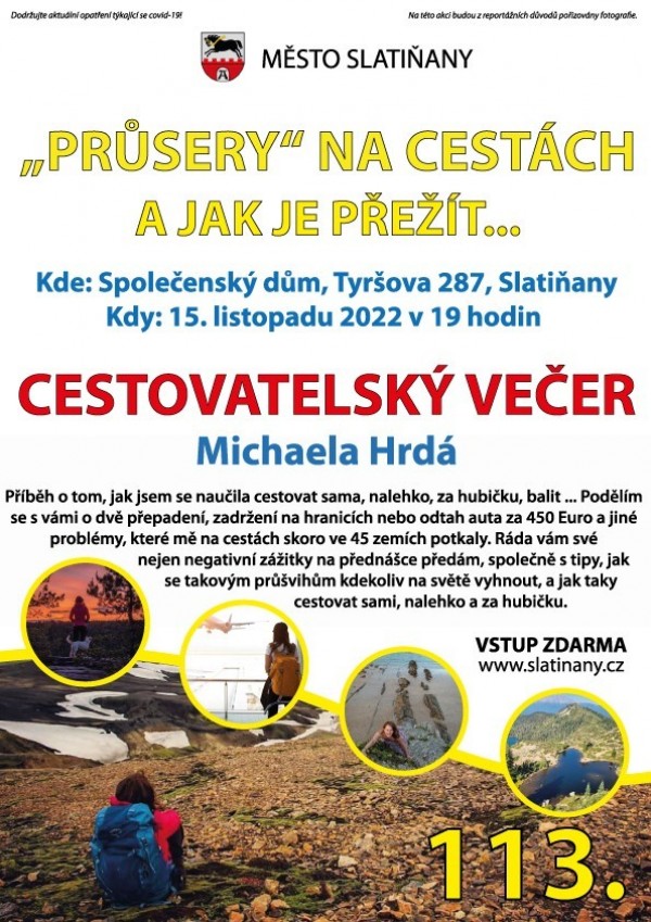 Dovolujeme si Vás pozvat na 113. cestovatelskou besedu s Michaelou Hrdou s názvem "Průsery" na cestách a jak je přežít.