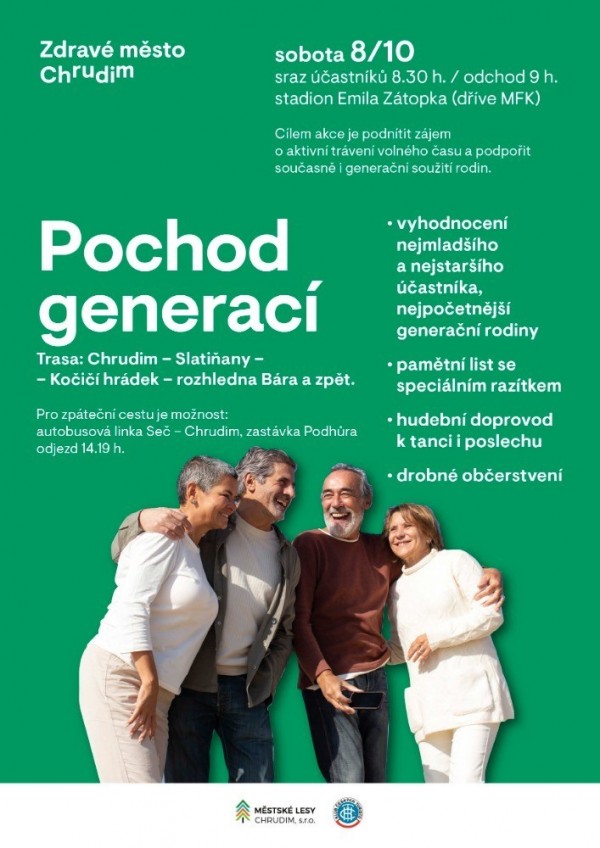 Součástí akce je vyhodnocení nejmladšího a nejstaršího účastníka a také nejpočetnější generační rodiny. Všichni získají pamětní list se speciálním razítkem. Akci připravuje Zdravé město a MA 21 společně s Klubem českých turistů a Městskými lesy Chrudim.