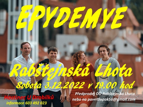 Koncert se uskuteční v Rabštejnské Lhotě v hostinci U Drobílků. Informace na tel: 603 492 023.