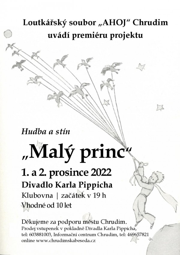 Stínové divadlo na motivy Antoine de Saint-Exupéryho podpořeno hudbou. Vhodné od 10 let.