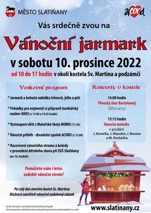 Město Slatiňany Vás srdečně zve na Vánoční jarmark s kulturním programm v okolí kostela Sv. Martina a podzámčí.