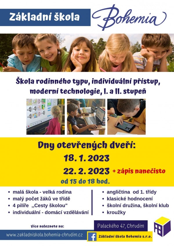 Škola rodinného typu, individuální přístup, moderní technologie, ... Vás zve na dny otevřených dveří: