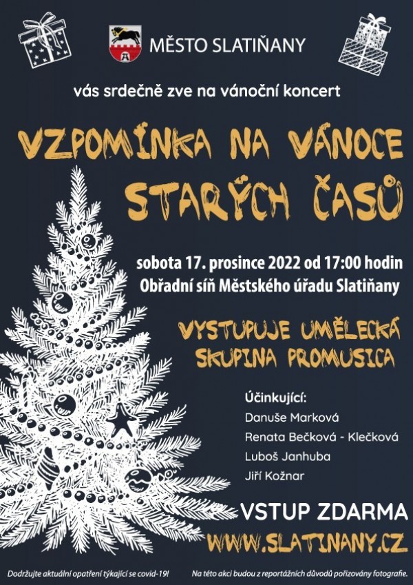 Město Slatiňany Vás srdečně zve na vánoční koncert "Vzpomínky na vánoce starých časů".