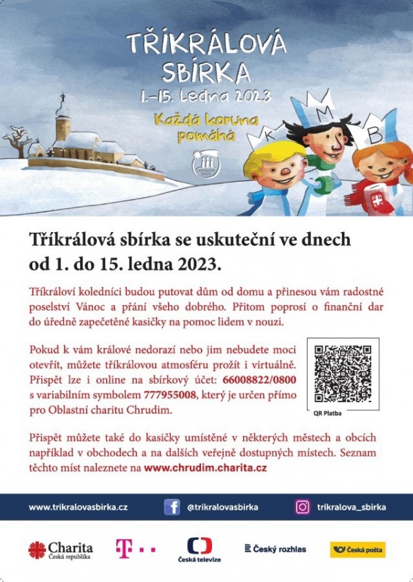 - Do 31. ledna lze přispět i online na sbírkový účet: s variabilním symbolem , který je určen přímo pro Oblastní charitu Chrudim.