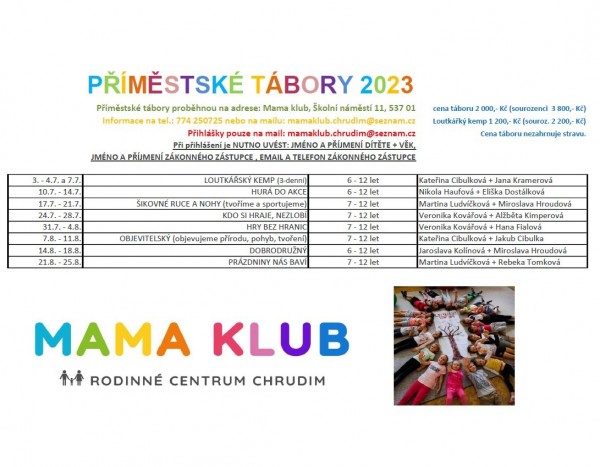 Info:  774250725 nebo na našem mailu. Přihlášky prosíme POUZE na mail: mamaklub.chrudim@seznam.cz.
