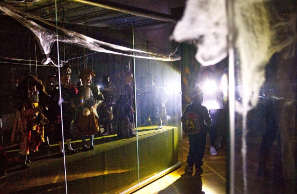 Prohlídka duchůplně dekorovaného muzea s baterkami a pracovními listy.
