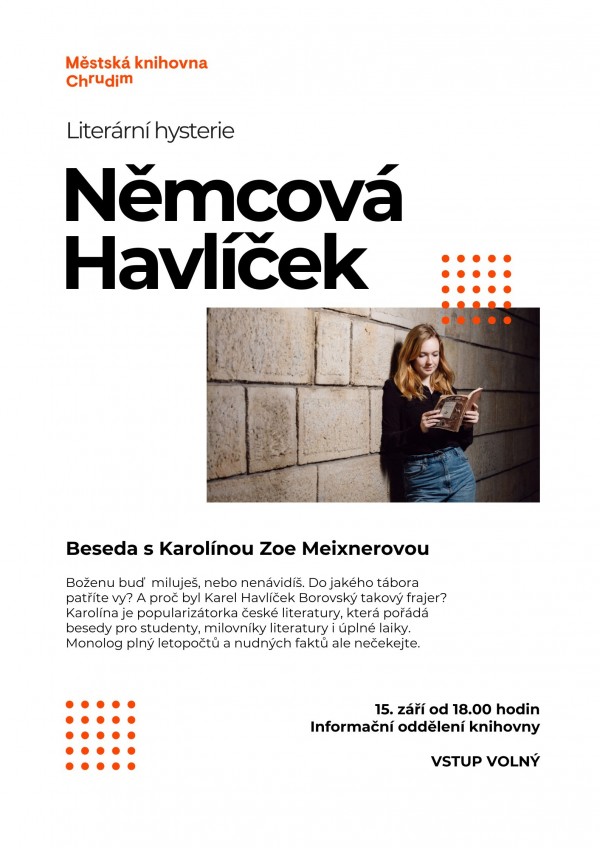 Nahlásit chybu v akci Literární hysterie - beseda s Karolínou Zoe Meixnerovou