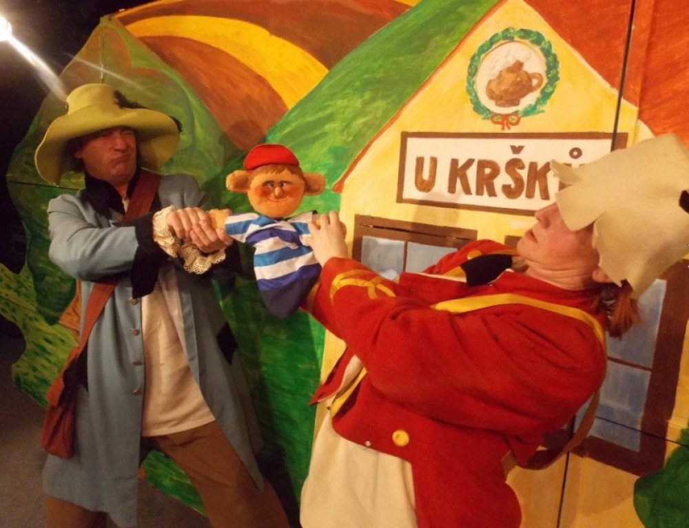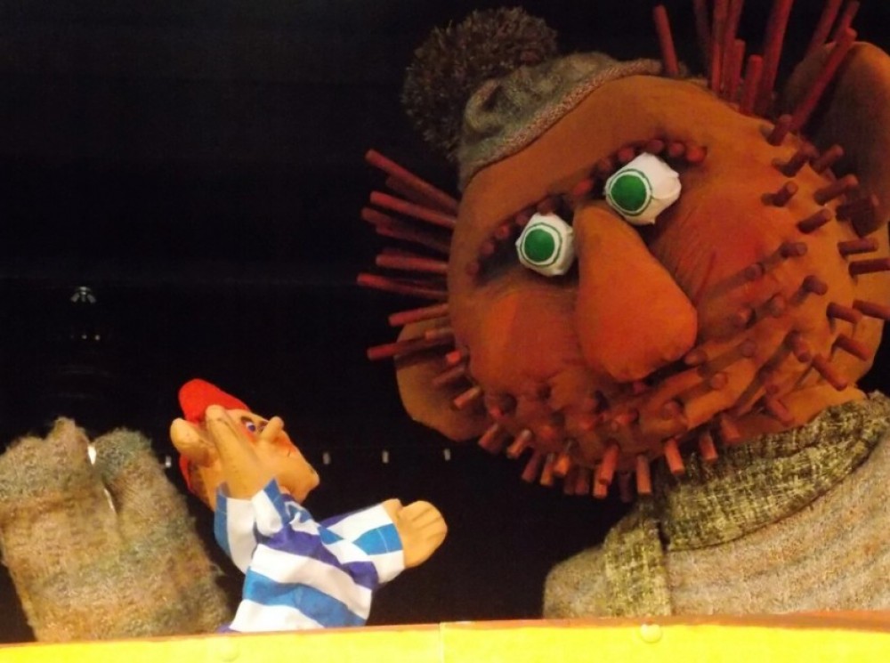 Inscenace o malém, mrštném a vtipném hrdinovi je vsazena do velkých, variabilních, barevných kulis, herci v příběhu vystřídají mnoho převleků a k pomoci jim budou samozřejmě loutky.