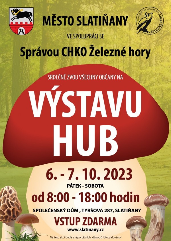 Město Slatiňany ve spolupráci se Správou CHKO Železné hory srdečně zvou na Výstavu hub.