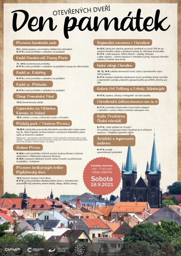 V sobotu 18.9. přijďte navštívit chrudimské památky od 9 do 17 h (vstup zdarma).