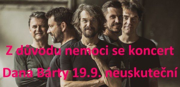 Z důvodu nemoci se koncert Dana Bárty v neděli 19.9.2021 neuskuteční, o náhradním termínu probíhá jednání.