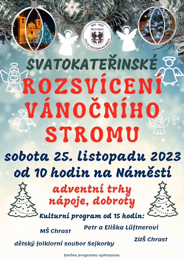 Letos rozsvítíme strom již na svátek sv. Kateřiny. Kulturní program, nápoje a dobroty a také zjevení andělů, tentokrát svatokateřinské více...
