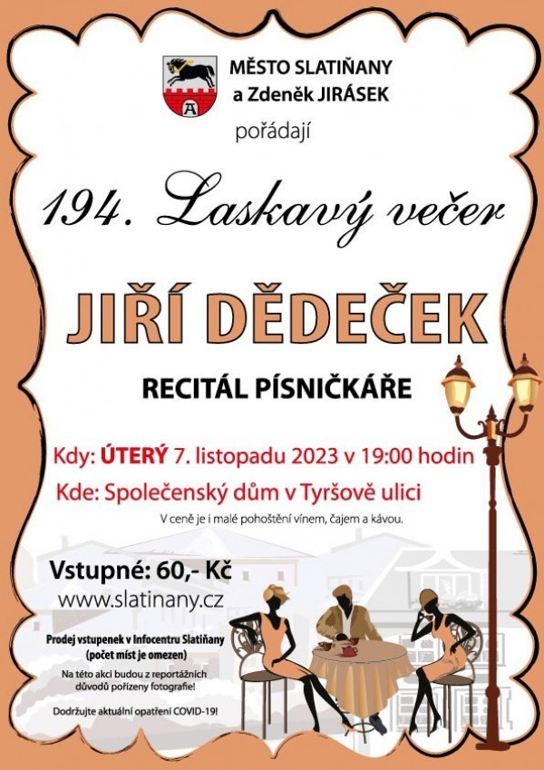 Město Slatiňany a Zdeněk Jirásek pořádají a srdečně zvou na 194. Laskavý večer s písničkářem Jiřím Dědečkem.