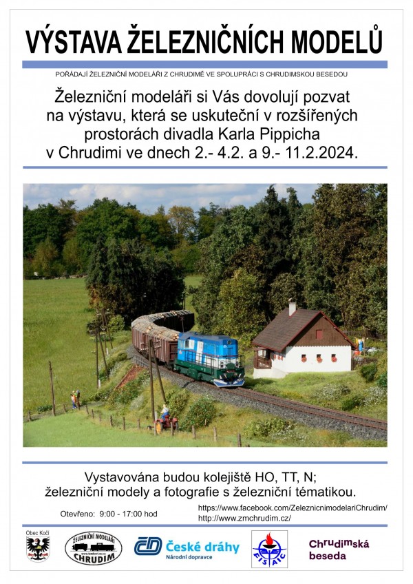 Železniční modeláři Chrudim ve spolupráci s Chrudimskou besedou Vás zvou na velkou výstavu železničních modelů, kolejišť a fotografií.