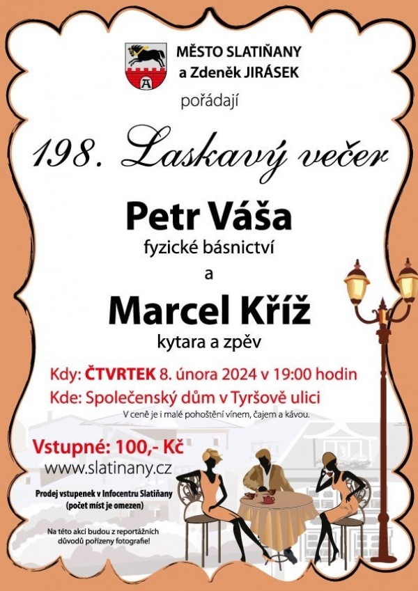 Srdečně zveme a na 198. Laskavý večer, kde vystoupí Petr Váňa fyzický básník a Marcel Kříž na kytaru a zpěv.