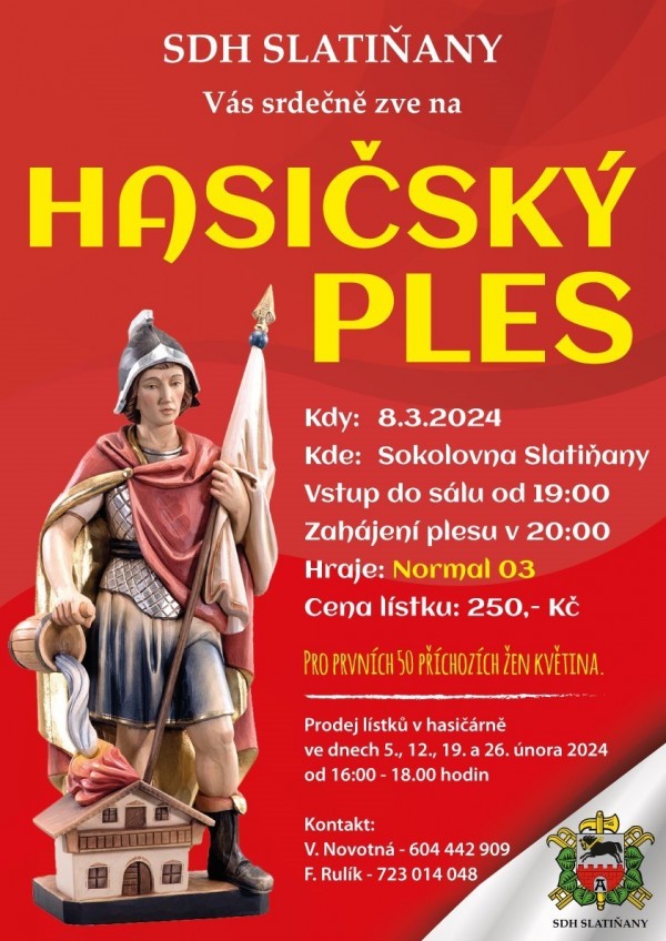 SDH Slatiňany Vás srdečně zve na Hasičský ples. Hraje kapela Normal 03.