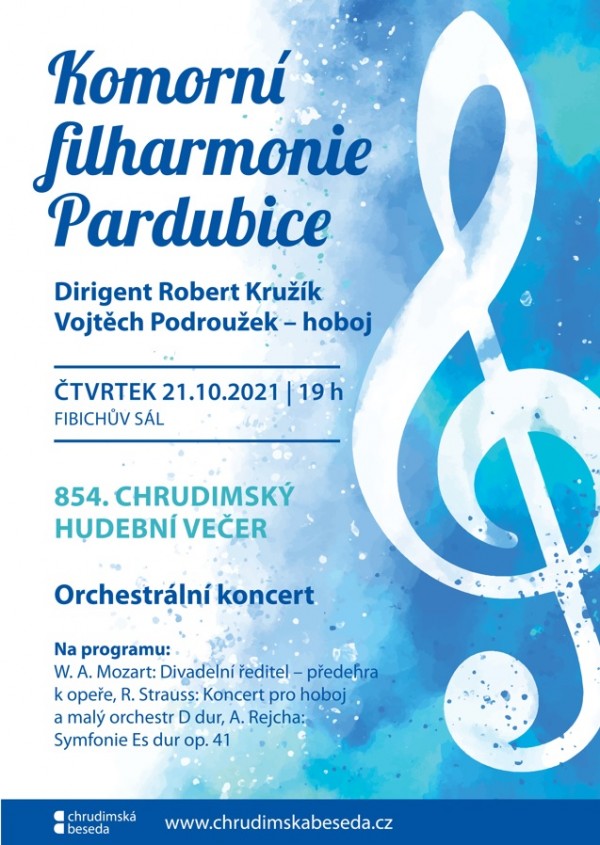 V programu: W. A. Mozart: Divadelní ředitel - Předehra k opeře, R. Strauss: Koncert pro hoboj a malý orchestr D dur, A. Rejcha: Symfonie Es dur op. 41