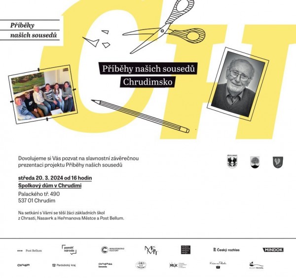 Slavnostní závěrečná prezentace výstupů žáků ze ZŠ v Chrasti, Nasavrkách a Heřmanově Městci z projektu Příběhy našich sousedů. V rámci své prezentace nás žáci seznámí také se zajímavé pamětníky, které pro svůj projekt vyhledali.