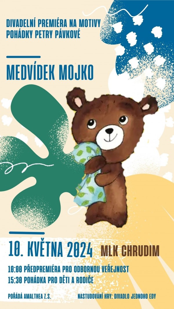 Jménem chrudimské organizace Amalthea z.s. Vás srdečně zveme na exkluzivní premiéru divadelního představení terapeutické pohádky Medvídek Mojko, kterou uvedeme v rámci naší dlouhodobé kampaně Staň se pěstounem.