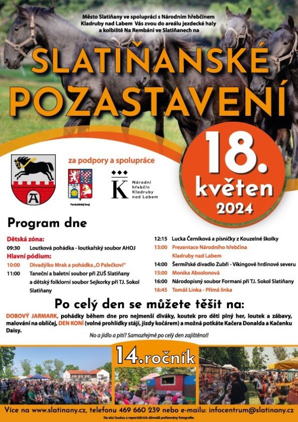 Srdečně zveme na celodenní kulturní akci plnou zábavy 18. Slatiňanské pozastavení. Součástí bude jarmark, pohádky pro děti, program pro děti i dospělé.