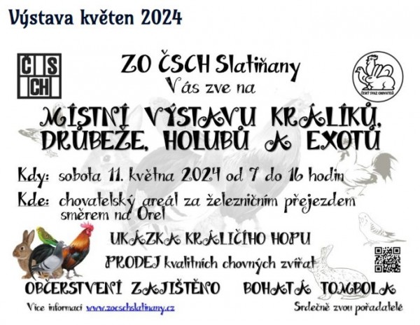 ZO ČSCH Slatiňany Vás zve na Místí výstavu králíků, drůbeže, holubů a exotů.