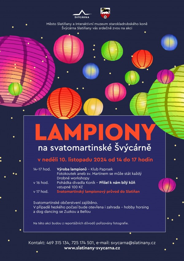 Dovolujeme si pozvat malé i velké na Lapiony na svatomartinskou Švýcárnu - výroba lampionů, pohádka divada Koník, Svatomartinský lampionový průvod.