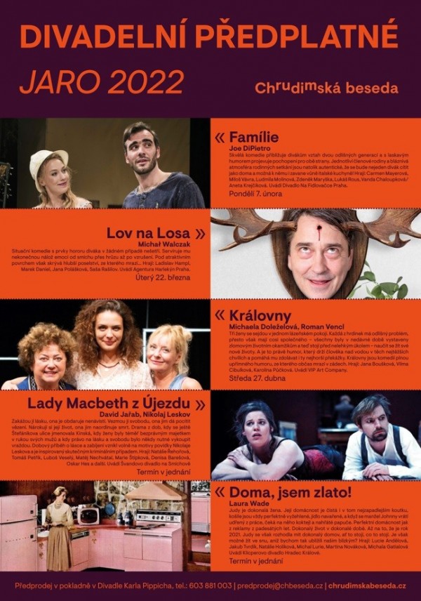 - v pokladně Divadla Karla Pippicha, tel: +420603881003, mailto: predprodej@chbeseda.cz