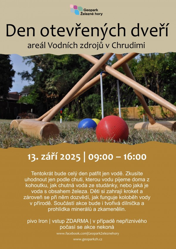 Tentokrát bude celý den patřit jen vodě. Zkusíte uhodnout jen podle chuti, kterou vodu pijeme doma z kohoutku, jak chutná voda ze studánky, nebo jaká je voda s obsahem železa. Děti si zahrají kroket a