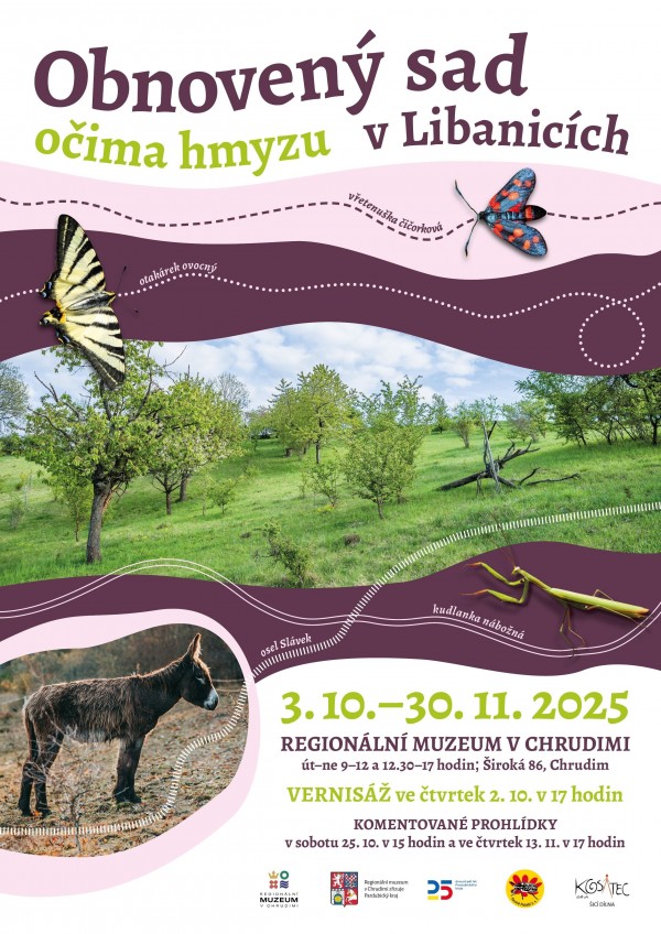 Ponořte se do tajemného a pestrého světa hmyzu! Kurátor výstavy vás provede expozicí, která představuje obnovu ovocného sadu v Libanicích právě z pohledu jeho nejmenších obyvatel. Dozvíte se, jakou roli hraje hmyz v přírodních procesech, proč je pro rovnováhu prostředí tak důležitý a jaké fascinující souvislosti lze objevit i v našem nejbližším okolí.