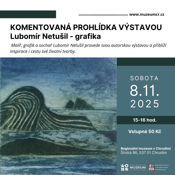 Zveme vás na komentovanou prohlídku výstavou Lubomír Netušil – obrazy, grafika, plastiky z let 1966 - 2025, kterou osobně povede autor výstavy – Lubomír Netušil.