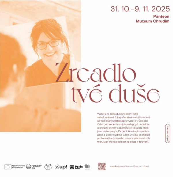 Výstava Zrcadlo tvé duše je společný projekt Pardubického kraje a studentů Střední školy uměleckoprůmyslové v Ústí nad Orlicí. Jeho cílem je přiblížit problematiku duševního zdraví a představit role těch, kteří mohou pomoci na cestě k zotavení.