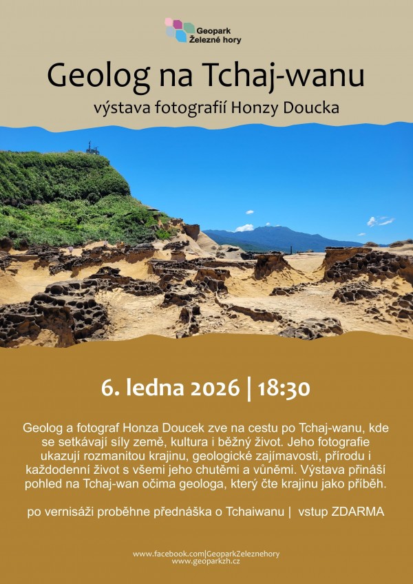 Geolog a fotograf Honza Doucek zve na cestu po Tchaj-wanu, kde se setkávají síly země, kultura i běžný život. Jeho fotografie ukazují rozmanitou krajinu, geologické zajímavosti, přírodu i každodenní život s všemi jeho chutěmi a vůněmi. Výstava přináší pohled na Tchaj-wan očima geologa, který čte krajinu jako příběh. Po vernisáži proběhne přednáška o Tchaiwanu, vstup ZDARMA.