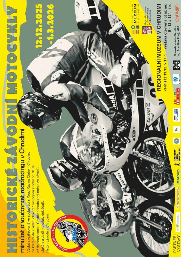 Zveme vás na jedinečnou výstavu věnovanou závodům na přírodních okruzích a jejich tradici v Chrudimi. Ve spolupráci s mladým, ale zkušeným Road Racing Clubem Chrudim představujeme svět rychlosti, odvahy a motorsportu, který se zapsal do historie regionu.