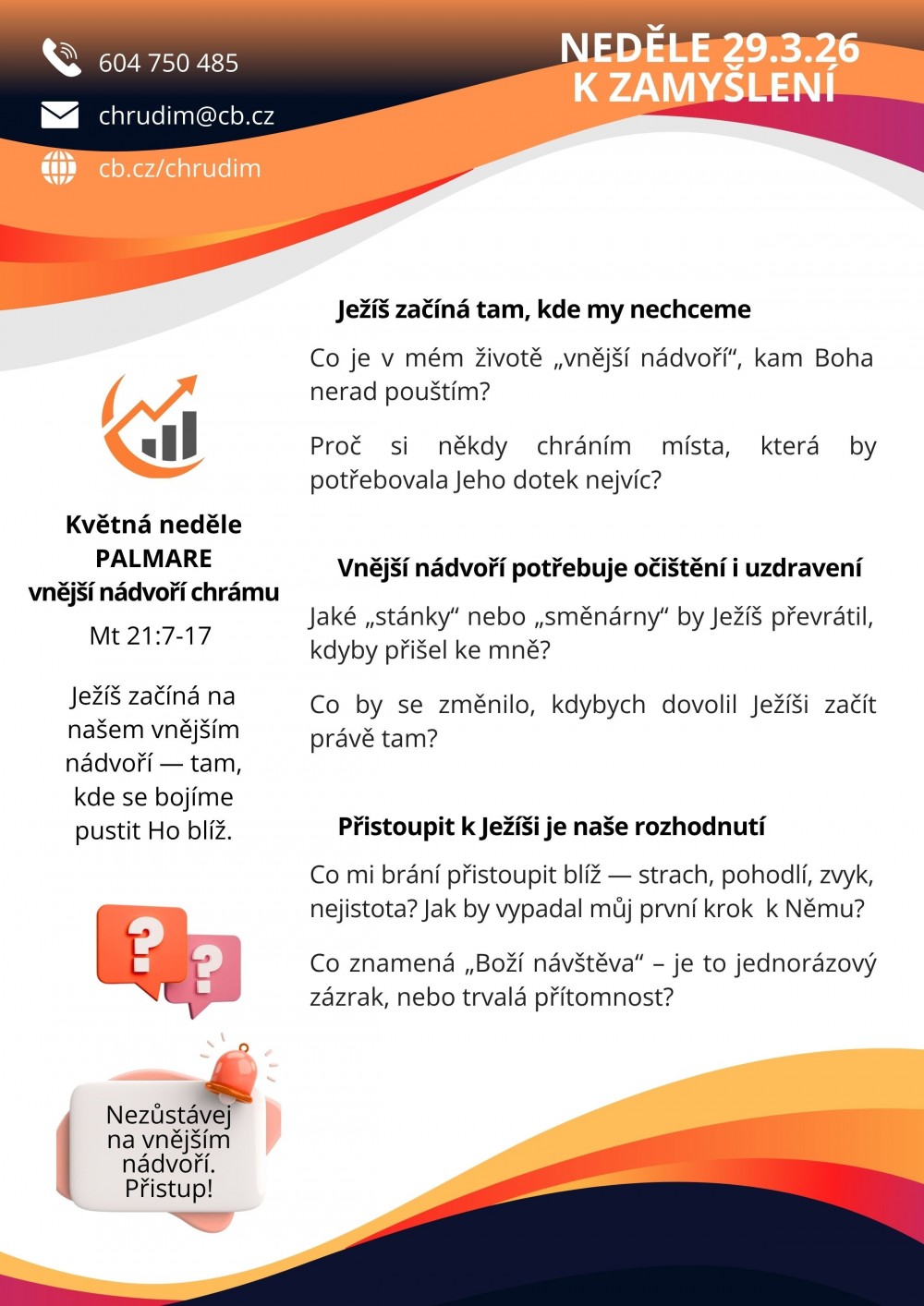 Církev bratrská je společenstvím lidí, kteří vyznávají osobní křesťanskou víru v trojjedinného Boha jako svého Spasitele a Pána. Přijímá Bibli za měřítko víry, učení a života. Hlásí se k základním starokřesťanským vyznáním víry, k dědictví světové i domácí reformace, zvláště pak k odkazu Jednoty bratrské a k zásadám evangelikálního hnutí. Tvoří svazek samostatných sborů, do kterých může kdokoliv přijít a hledat odpovědi na základní životní otázky. Scházíme se každou neděli od 9:30. Kromě hlavních nedělních bohoslužeb máme dále setkání nad Biblí, setkání dětí, dorostu, mládeže a další aktivity.