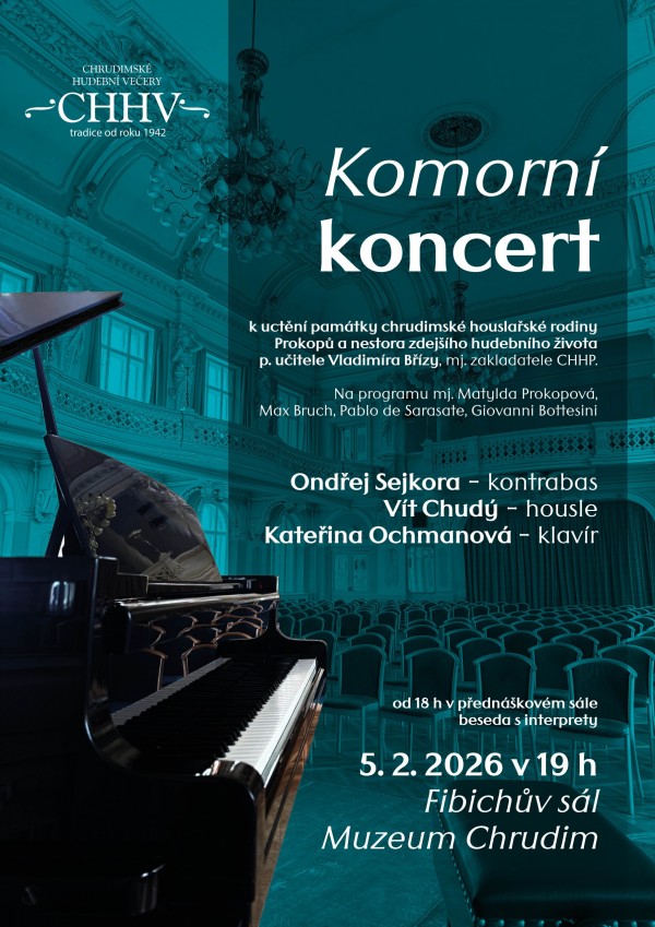 Komorní koncert (v 19 h) k uctění památky chrudimské houslařské rodiny Prokopů a nestora zdejšího hudebního života p. učitele Vladimíra Břízy, mj. zakladatele Chrudimských hudebních pátků. Před koncertem se uskuteční beseda s interprety od 18 h v přednáškovém sále (Muzeum Chrudim) .