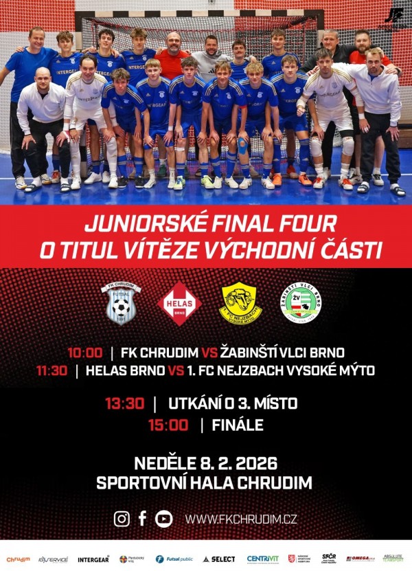 Zveme Vás do Sportovní haly Chrudim na juniorské a dorostenecké Final Four o titul vítěze východní části. Dorostenci odehrají svoje Final Four v sobotu 7.2.2026, junioři o den později, tj. v neděli 8.2.2026 ve Sportovní hale Chrudim (Tyršovo náměstí 12, Chrudim).