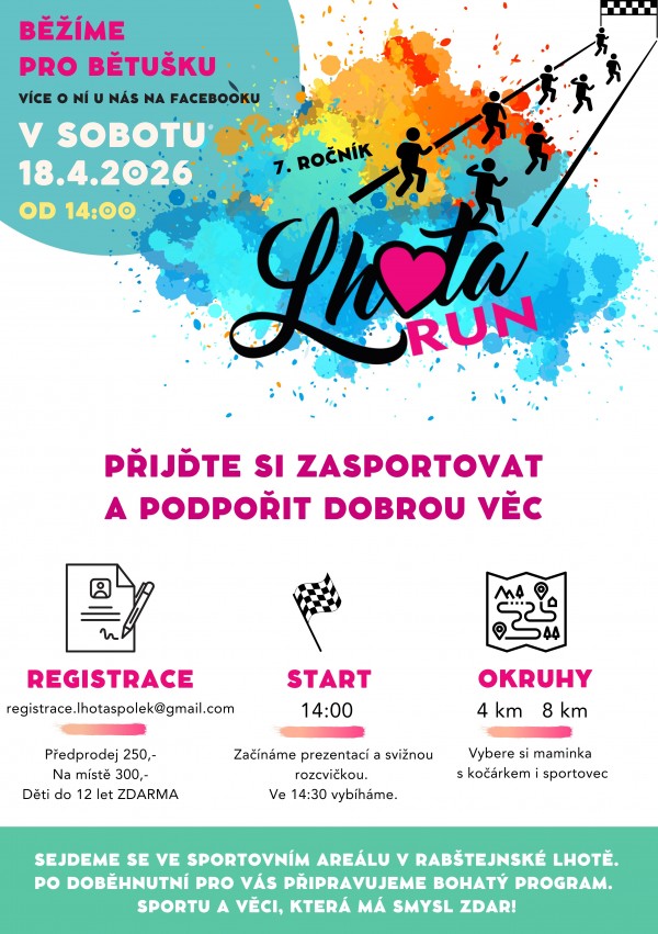 Srdečně zveme na charitatiní běh Lhota Run - běžíme pro Bětušku.