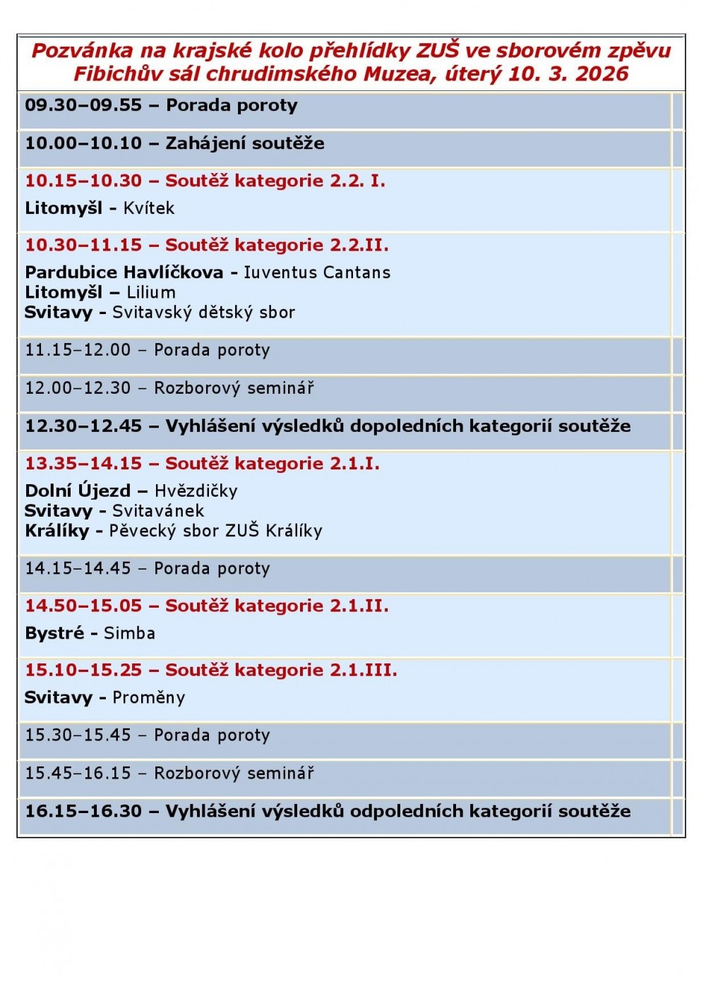 Krajské kolo pěveckých sborů ZUŠ v Chrudimi