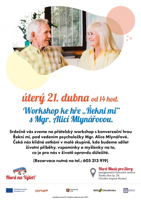 Zveme Vás na konverzační workshop v malé skupince, kde můžete sdílet své životní příběhy a myšlenky o tom, co je pro nás v životě opravdu důležité. Besedou provází Mgr. Alice Mlynářová.