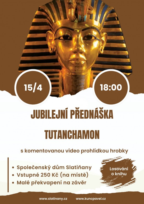 Srdečně zveme na jubilejní přednášku Tutanchámon s komentovanou video prohlídkou hrobky.