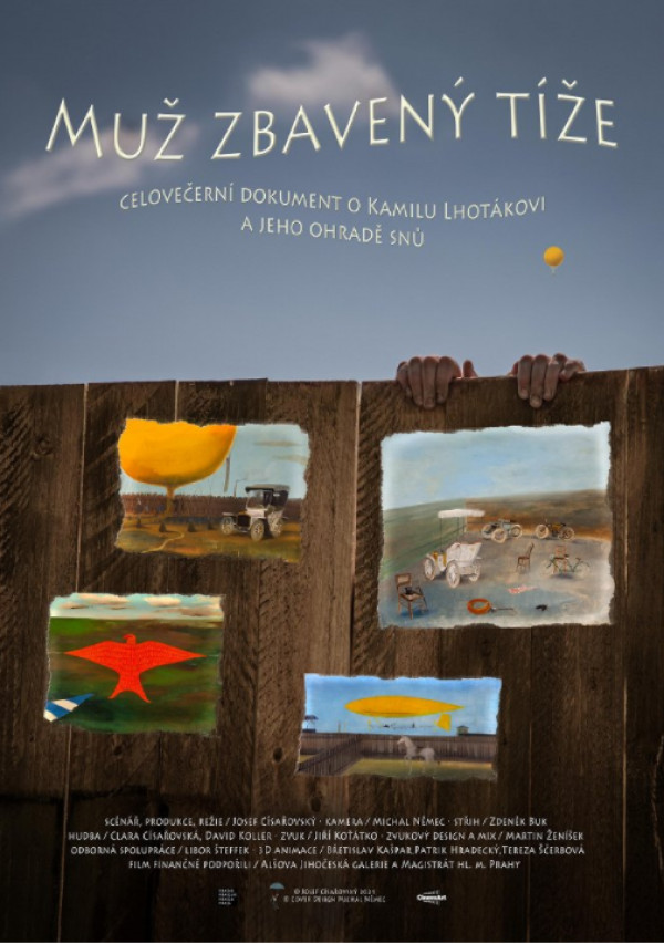 Existovala vůbec „tajemná ohrada snů“ s dírou po suku, jíž nahlížel do dílny, kde se na periferii města opravovala auta a letadla? A pokud ano, kde stála? Kým je onen „muž zbavený tíže“, který si vykračuje vzduchem? Je to on sám? Víme, že jedním silným impulsem pro malého Kamila Lhotáka byla pražská výstava v roce 1891, na které došlo k zřícení horkovzdušného balónu Kysibelka. Lhotáková touha zbavit se zemské tíže se pak prosazovala v celé řadě jeho dalších děl. Stejně jako jeho láska k starým automobilům a nejrůznějším vznášedlům, k magickému Českému středohoří i opuštěným periferiím a tajemstvím skrytými za ohradami. Jeden vypadlý suk tak spojuje celý sled asociací, vzpomínek a snových výjevů. Autoportrét Kamila Lhotáka levitujícího nad Ohradou snů se proměňuje v Muže zbaveného tíže, který se nakonec snáší k zemi jako vzkaz z nebes v podobě novinového útržku..