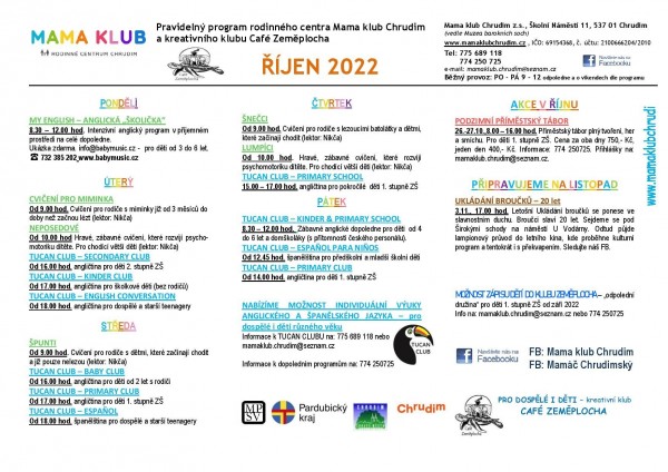 Nahlásit chybu v akci Mama klub Chrudim • program