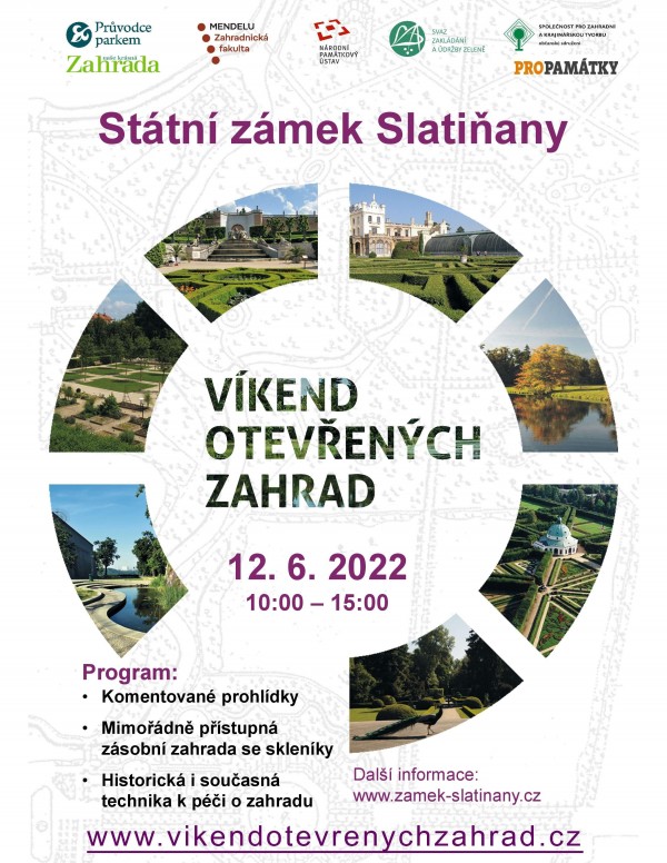 Státní zámek Slatiňany srdečně zven na "Víkend otevřených zahrad".Můžete se těšit na komentované prohlídky, přístup do zásobní zahrady a skleníků a ukázky techniky k péči o zahradu.