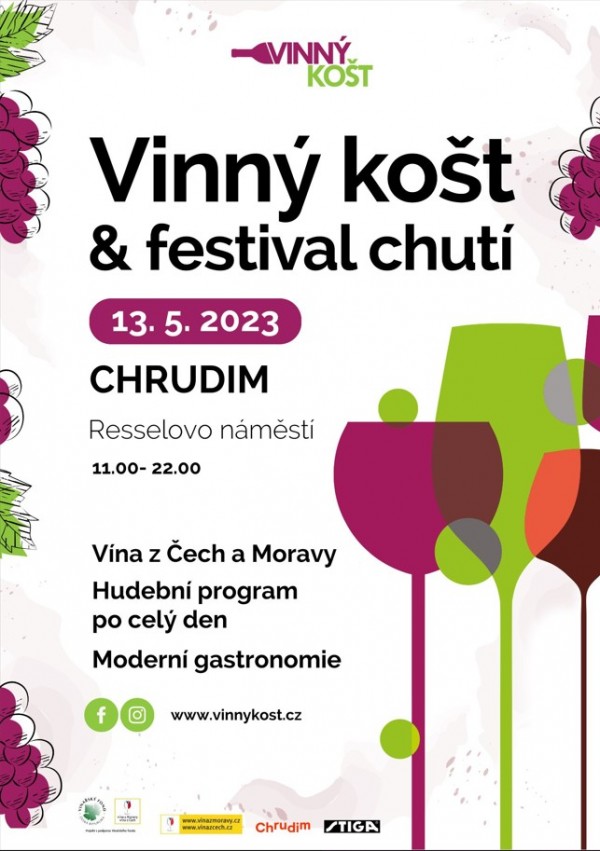 Pořadatel Vinný košt Vás zve na Resselovo náměstí v Chrudimi. Zde se poprvé uskuteční Vinný košt & festival chutí, a to v sobotu 13.5.2023 od 11 do 22 h.