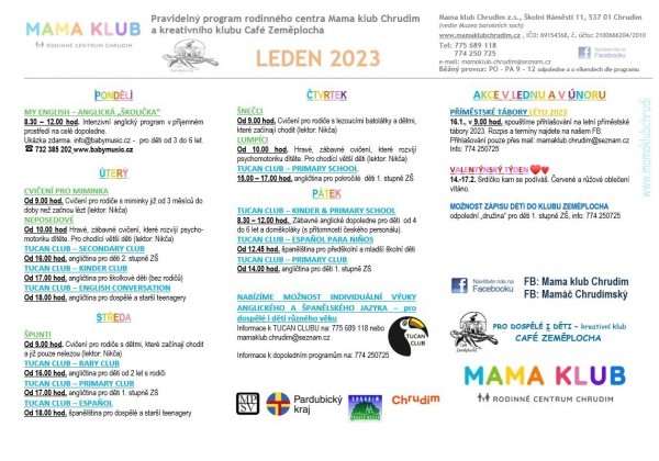• Středa v 16 h – Baby club – anj pro děti od 2 let + rodiče