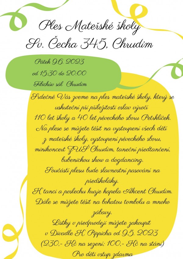 Pořadatel: Mateřská škola Svatopluka Čecha Chrudim Vás zve na PLES MATEŘSKÉ ŠKOLY
